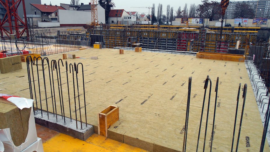 Durchgehend wasserabweisende und schallabsorbierende Steinwolle-Dämmplatte zur Wärmedämmung von Keller- und Tiefgaragendecken mit optisch untergeordneten Anforderungen.