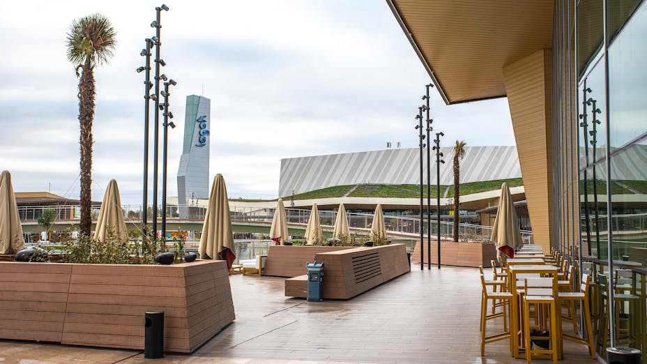 На терен, равняващ се на 20 футболни игрища, търговският комплекс Лаго в южна Испания се простира на 100 000 кв. м. площ, с изкуствено езеро от 6500 кв. м. Разположен в слънчева Севиля, четвъртият по големина град в Испания, той е построен с цел да се превърне в основният търговски център за града и предградията му с 1,5 милиона жители. Очаква се той да привлича 14 милиона посетители годишно.