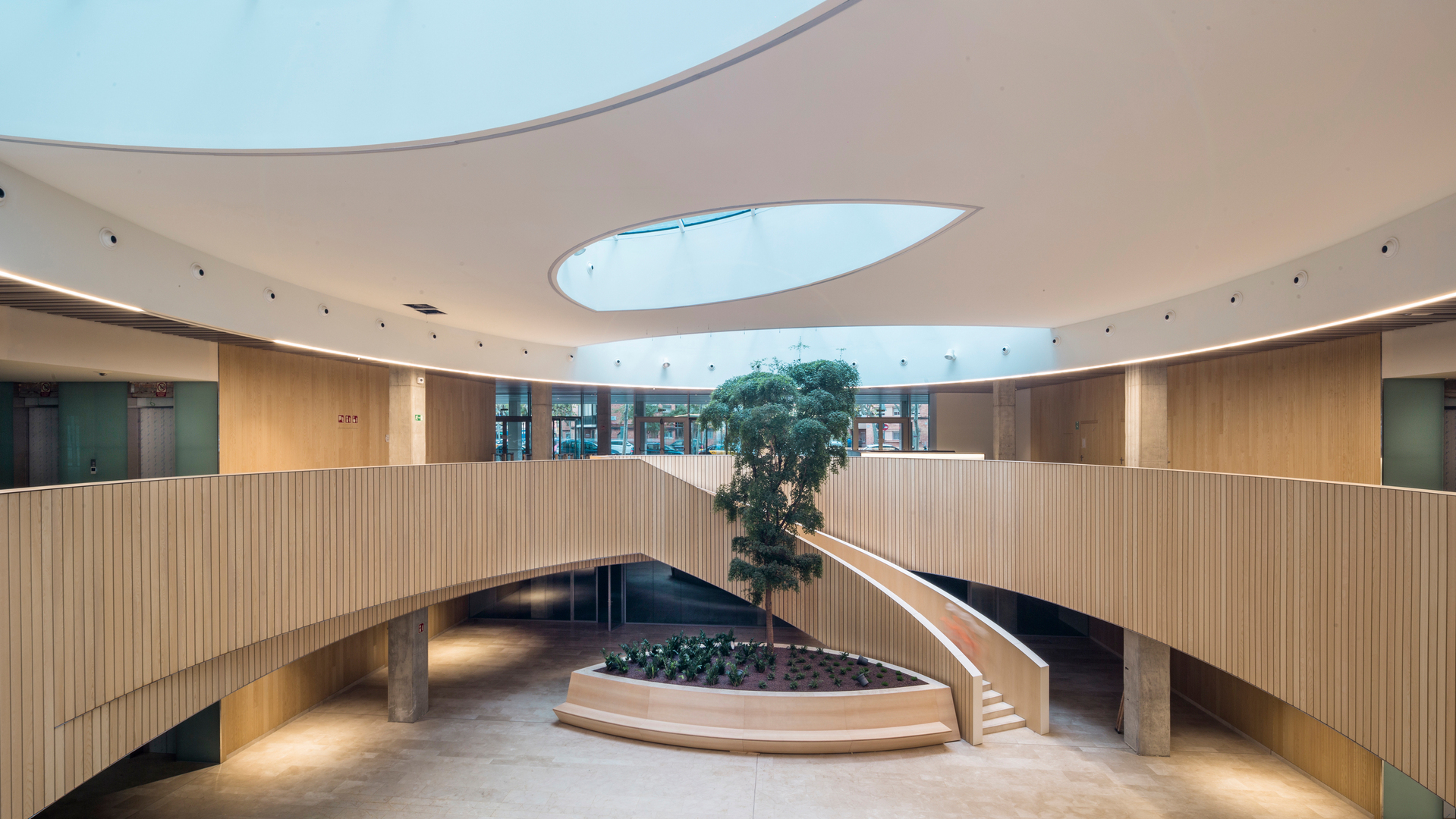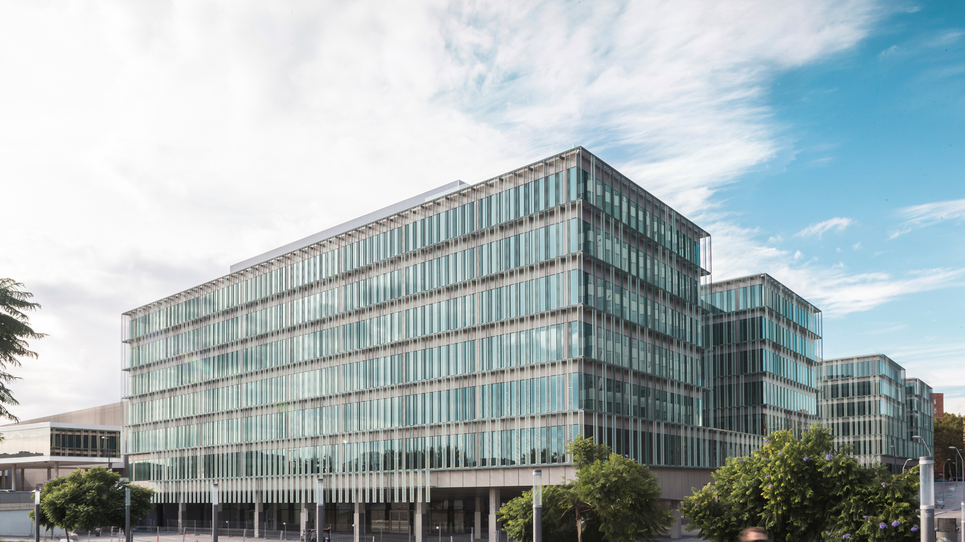 Ubicado en Barcelona, el nuevo espacio de trabajo de la Generalitat de Catalunya consta de una superficie de 46.000 m2 y está preparado para acoger a unos 3.000 trabajadores a través de dos volúmenes de 5 y 6 plantas unidos por un zócalo común.
