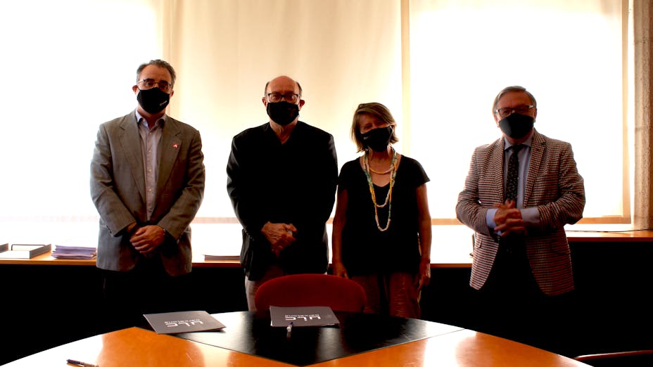 El pasado 1 de julio, UIC Barcelona y la empresa ROCKWOOL firmaron un convenio para la constitución de los Premios de Sostenibilidad ROCKWOOL, que tienen por objetivo principal garantizar un nivel alto de aplicación de los criterios de sostenibilidad en los Trabajos Final de Grado (TFG) de los estudiantes de UIC Barcelona School of Architecture. En la firma del convenio intervinieron el rector de UIC Barcelona, Xavier Gil, el director de UIC Barcelona School of Architecture, Josep Lluis i Ginovart, la profesora Teresa Batlle y el responsable de Relaciones Institucionales de ROCKWOOL, Albert Grau.