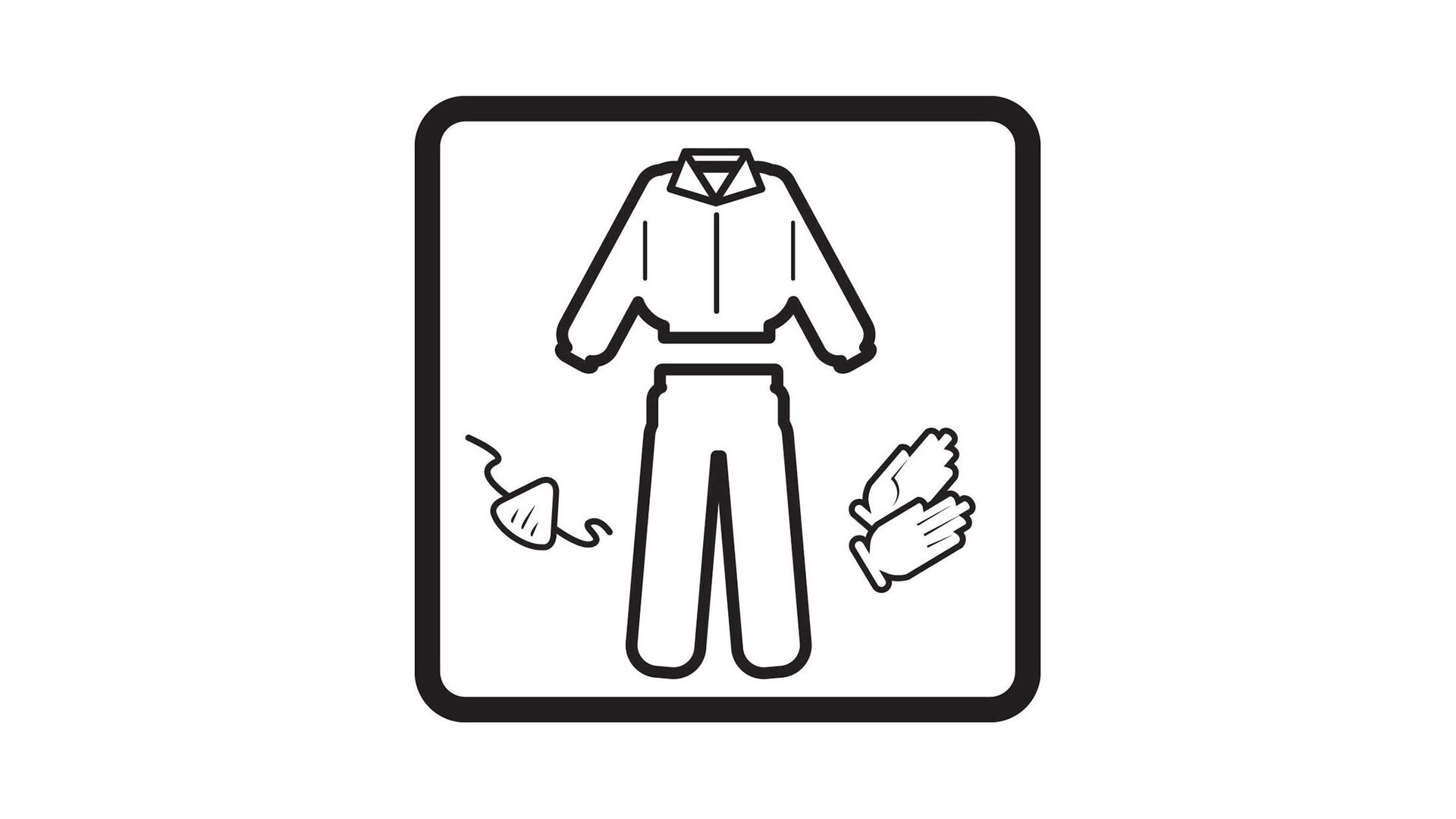 Seuraavissa kuvakkeissa näytetään, miten suojaudutaan työskenneltäessä mineraalivillalla.
