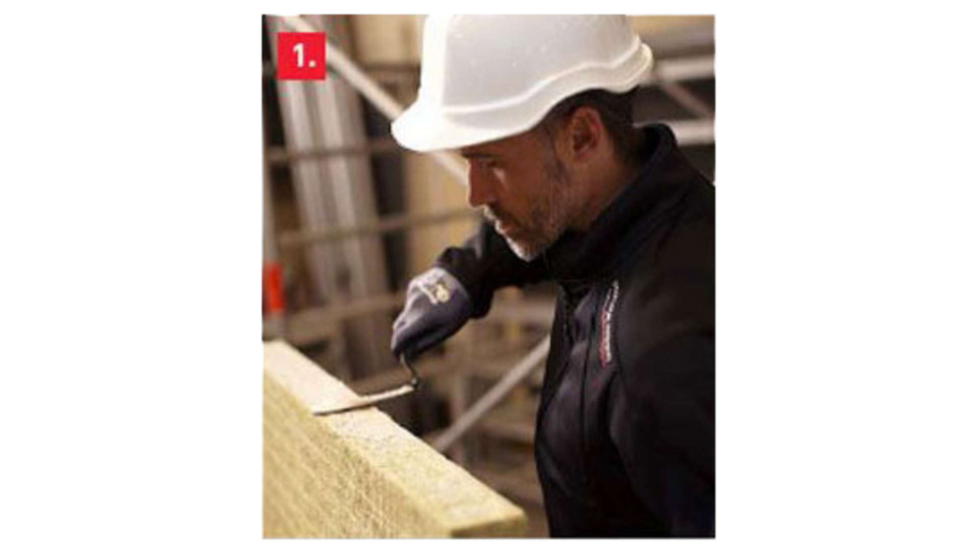 - Eristeiden reunoihin levitetään asennuksen yhteydessä Conlit-liimaa (menekki n. 1 kg/10 m²). Liima tekee puskuun asennettavien eristelevyjen saumoista palotiiviit.
