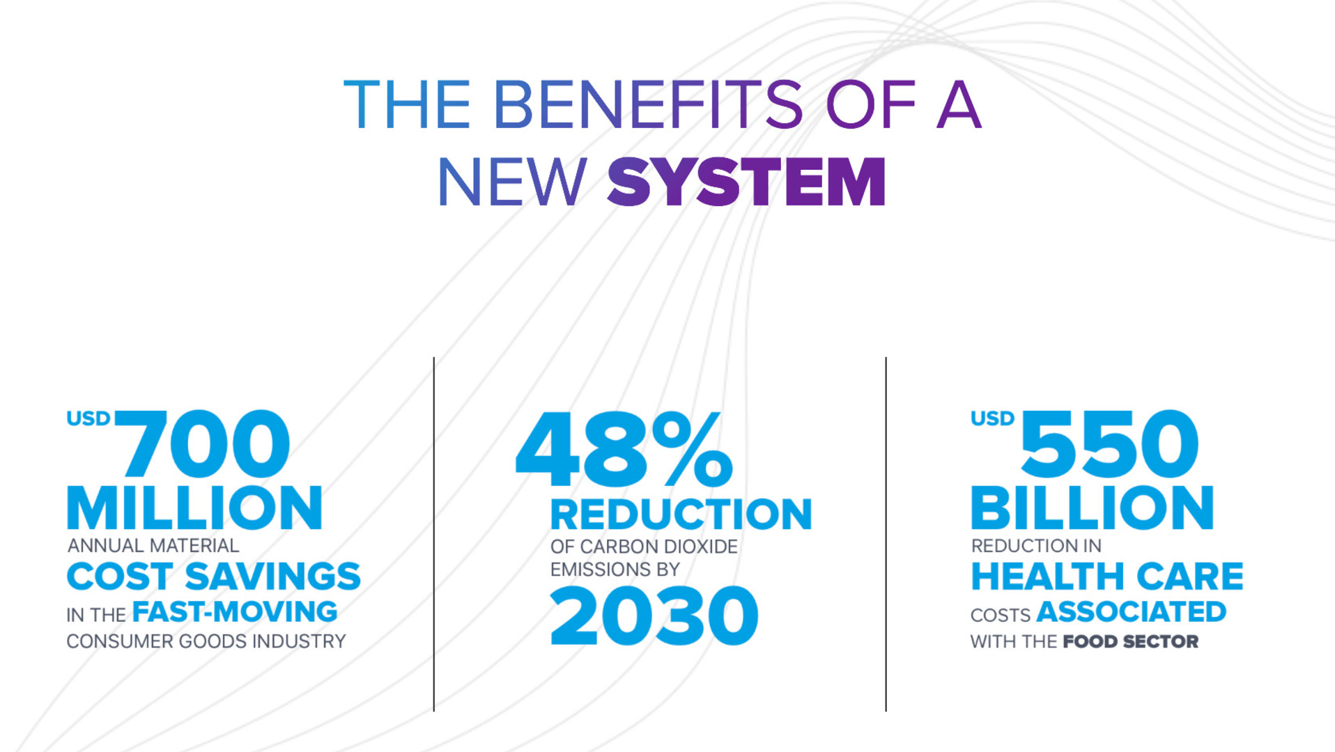 The benefits of a new system, graphic courtesy of the Ellen McArthur Foundation