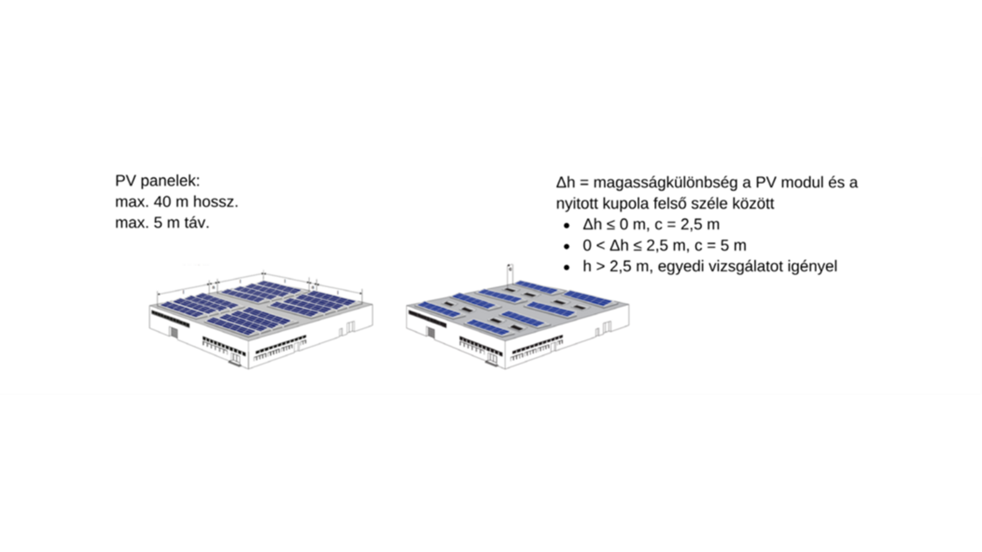 - gazdaságos, ha úgy kerül megtervezésre, hogy a napelemek elhelyezése ne jelentsen tűzvédelmi szempontból indokolatlan költségnövekedést,