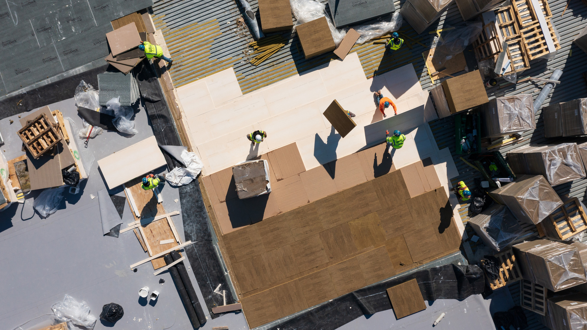 The ROCKWOOL Building Science Team provided testing data on a number of assemblies for Nations Roof to evaluate as they worked on a new design. They advised incorporating three fundamental principles for reducing sound transmission through the roof assembly: adding mass, adding absorption, and decoupling. Specifically, they recommended DensDeck for mass, ROCKWOOL Toprock® Flute Filler and Toprock® DD for sound absorption, and decoupling by adhering the top layer of gypsum roof cover board with the membrane in order to bury fasteners in the layer below.
