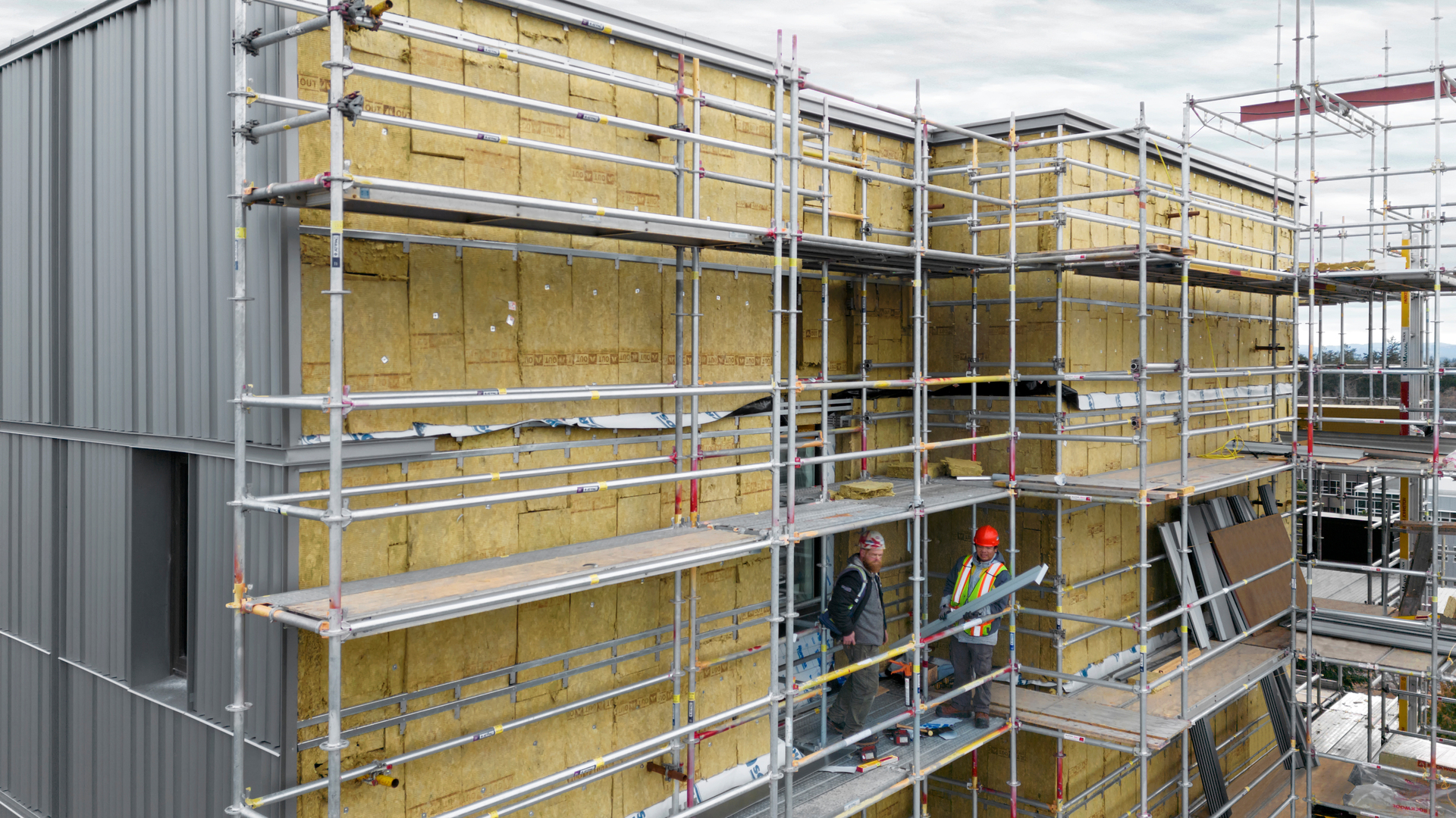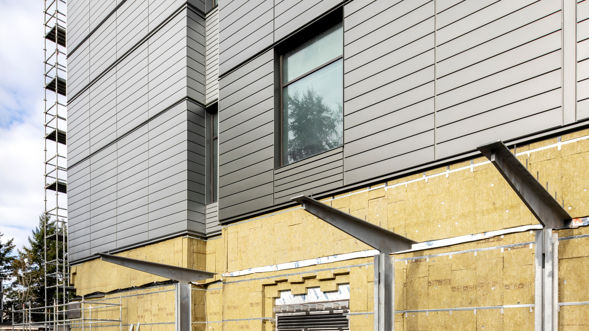 - Super-insulated stone wool continuous exterior insulation within the rainscreen assembly, contributing to high energy efficiency, thermal and occupant comfort, fire protection, and sustainability goals